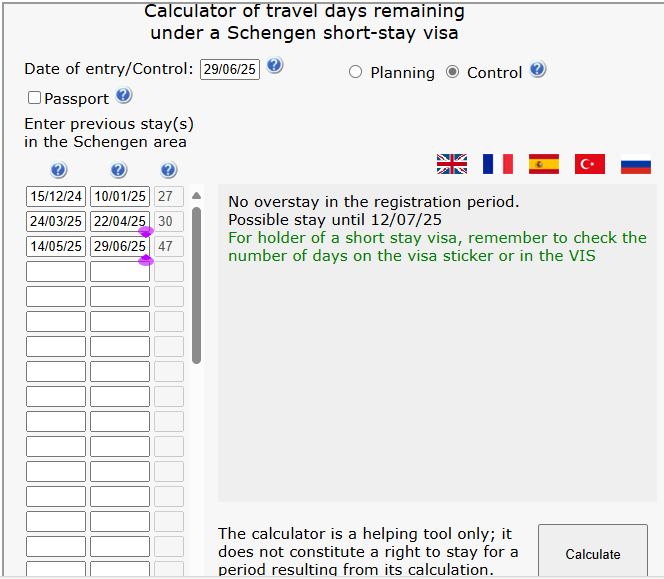 Schengen 90 Day Calculator