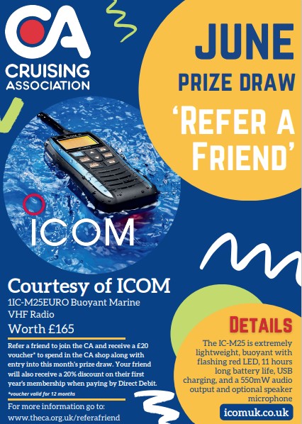 Now it’s your chance to win in June. Refer a Friend and you could win an IC-M25EURO Buoyant Marine VHF Radio worth £156 from ICOM.